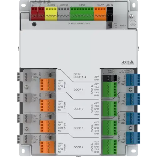 This compact, cost-efficient door controller gives you full control for up to four doors including support for up to eight OSDP readers and eight locks. With onboard lock power, this all-in-one multi-door controller simplifies complex installations