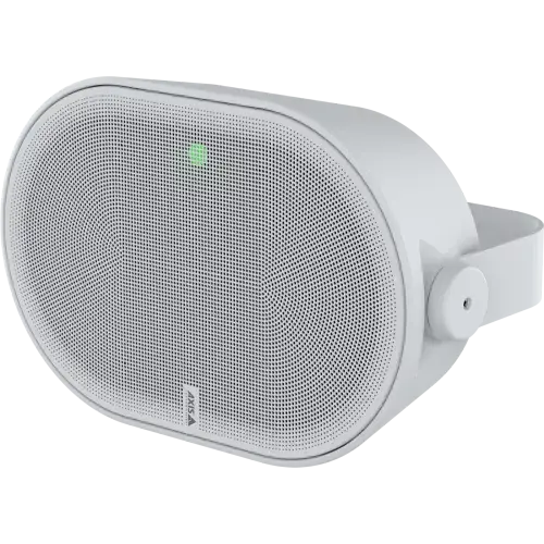 Similar to C1110-E, supports voice/music, full duplex 2-way, DSP, built-in mic, PoE. White color.
