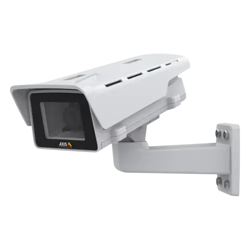 Outdoor 1080p day/night box camera with i-CS varifocal 3.5-10 mm lens, forensic WDR, Lightfinder, MQTT, PoE or DC powered, includes sunshield and mounting accessories.