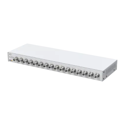 Sixteen-channel video encoder support PAL/NTSC cameras. Multiple, individually configurable H.264, H.265 and Motion JPEG streams. Frame rate 25/30 fps in all resolutions. Axis Zipstream technology for reduced bandwidth and storage needs. Video motion detection and active tampering alarm. 4 serial ports for RS422/485 communication. Power over Ethernet or 12-20V DC input. MicroSD/MicroSDHC memory card slot for optional local video storage. PTZ cameras control over the serial ports.