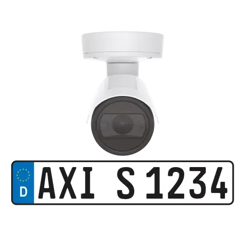 Outdoor 1080p fixed bullet camera with built-in License Plate Verifier application, optimized for license plate detection 7-20 m, IP66/67, IK10, shock detection, PoE or 12-28V DC powered.