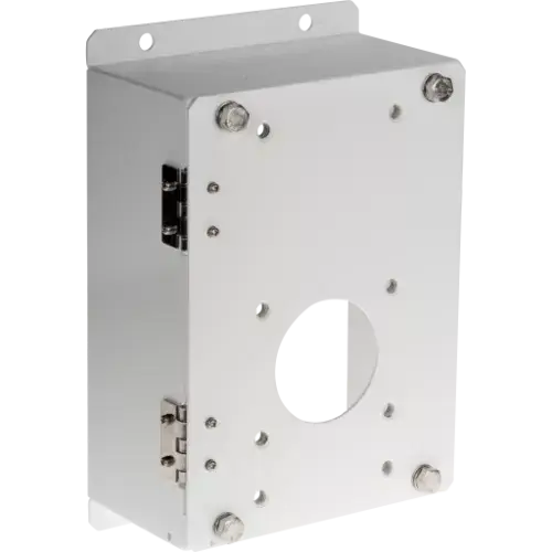 Outdoor pole mount bracket for PS-24 and AXIS T97A10. Requires Wall Mount AXIS PS-24 (5000-011) and mounting tool for straps (21776 or similar).