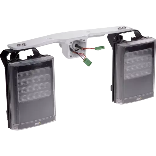 850nm IR LED illuminator kit compatible with AXIS T99A Positioning Units for visual cameras. Kit includes one pair of IR illuminators, one metal mounting bracket, and three different diverging lenses. Note: this is the same illuminator kit as used in AXIS Q8685-LE PTZ Network Camera.