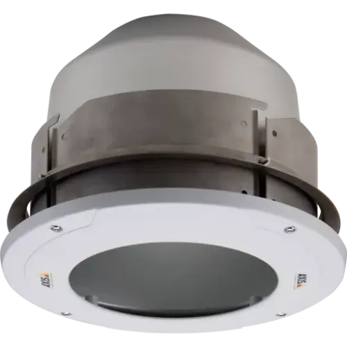 Outdoor recessed mount for AXIS Q60-E cameras. Can be mounted in panels, wood or pre-made holes solid concrete. The mount is very sturdy and made of aluminum and stainless steel. It supports the IK10 impact rating of the camera and has two 3/4" conduit holes for a plenum rated and rodent safe installation.