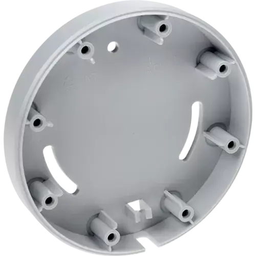 White plastic adapter for mounting AXIS P3904-R and AXIS P3905-R on flat surfaces. Does not fit with AXIS P3915-R. Used when the cable must enter from the side. 10 pack.