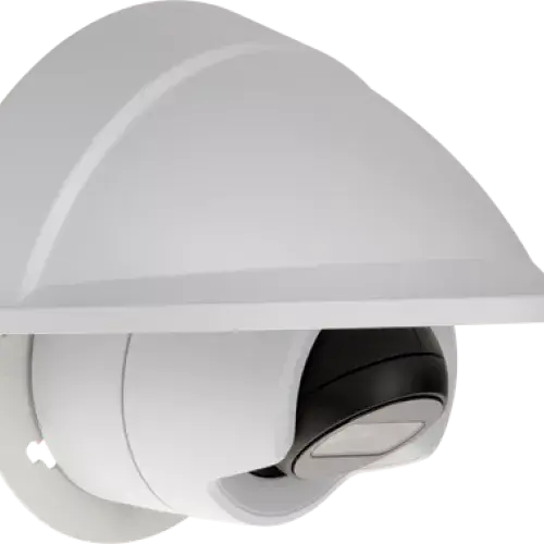 Heavy duty outdoor weathershield for wall mounted AXIS fixed dome cameras. Designed to protect the dome from rain, snow and sun. The underside of the cover is coated with matte black anti-reflective coating, for suitable use with camera's built-in IR LEDs.