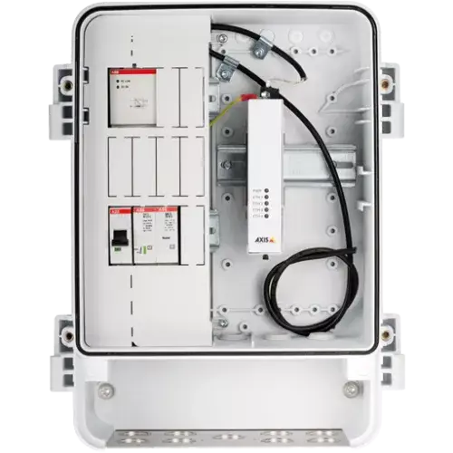 Pre-assembled T98A Surveilance cabinet with following system compoents: (1) Breaker and surge protection, (2), 12 VDC DIN PSU, (3)AXIS T8604 Media Converter, (4) Internal cables and mounts. Tested and verified with Axis cameras.