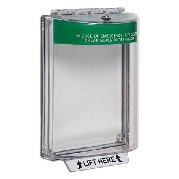 Univ Stopper- green sounder-12-24VDC- flush- Emergency Label